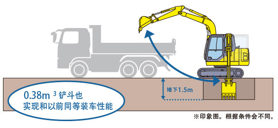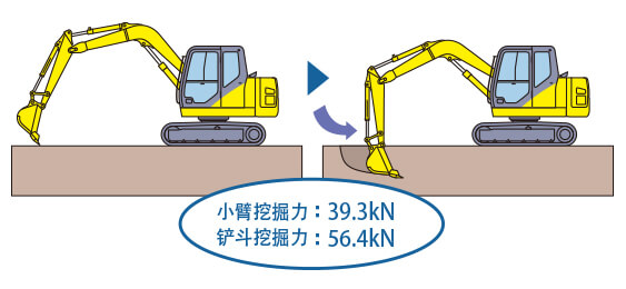 強勁的挖掘力 小臂/鏟斗都具有同級別中^高水平的挖掘力,順利實現(xiàn)挖掘作業(yè) |
