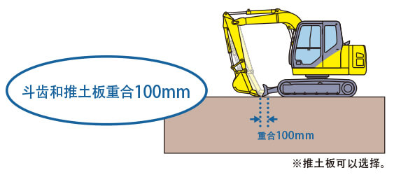 近前作業(yè)性能提升 鏟斗底面近前挖掘作業(yè)性提升。將斗齒和推土板部分重疊, 更容易挖起土渣和石頭 |