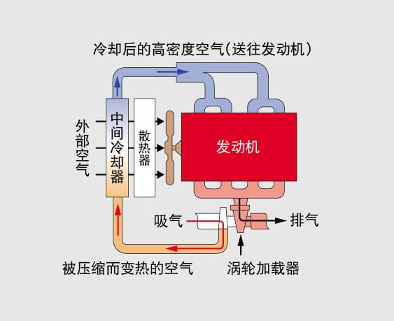 帶中冷器的渦輪發(fā)動機 吸入的空氣在渦輪加載器的壓縮下形成高溫,經(jīng)中間冷卻器冷卻后可提高吸入效率。在大幅度減少NOx和PM的同時,提高了輸出功率,減少了油耗。 |