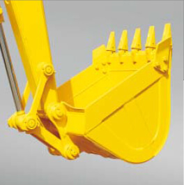 提高耐磨性的專用鏟斗 鏟斗需要在惡劣條件下使用,因此我們采用特殊設(shè)計,強化板材厚度,實現(xiàn)超長耐用性。此外,考慮到要長時間作業(yè),斗銷中還采用含油燒結(jié)墊圈。 |