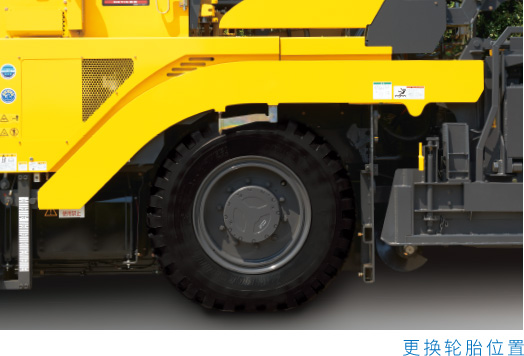 更換輪胎時將熨平板油缸和調平油缸提升到^大高度,即可更換。