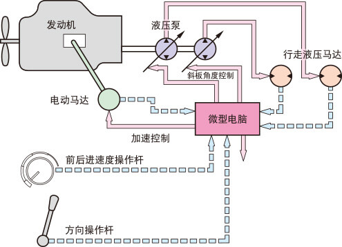 發(fā)動(dòng)機(jī)、液壓泵、行走馬達(dá)由電腦集中控制。由于能夠保存已設(shè)定內(nèi)容,只需操作行走按鈕的[入/切]就能施工。HA90C的控制還有以下特長(zhǎng)。